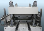 The wooden cut die can be drawn out by unscrew the 4 fixing nuts above. The etch die can be installed with additional pad with the thickness 22. The high parallel accuracy of upper and lower die can avoid the adjustment for half cutting.